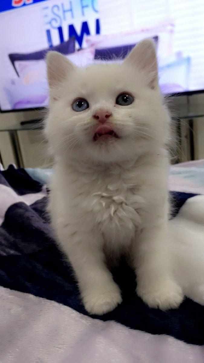 By the way, Bella is my Turkish Angora cat with white fur. We made her a family member four years ago.