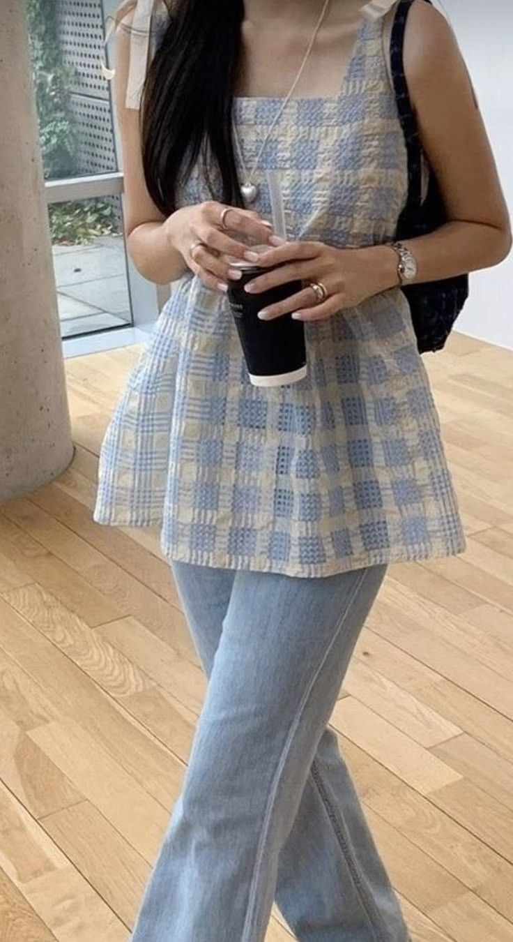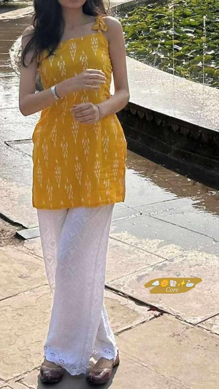 After five minutes, she returned wearing a short yellow kurti paired with a white palazzo. Meanwhile, her best friend was dressed in a blue kurti with blue denim.